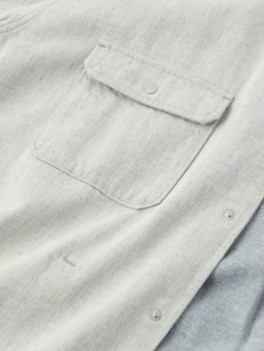 デニムをつくる際には他の洋服と比べてより多くのムダとロスが出てしまいます。それはどんなに高い技術力をもった工場でもゼロにすることはできません。そんな状況に対して何かできないかと考えていた頃、取引先である会社がインディゴデニムの裁断くずを再利用した糸を使ってデニム生地をつくっていることを知りました。この生地を使うことで、裁断くず(=ロス)を減らすことに繋がります。このデニム生地は、裁断くずを綿の状態に戻し、新しいコットンとブレンドしてから撚った糸からつくられています。また、1kgの繊維を染めるには約30リットルの水を使うと言われており、こちらも少しでも削減できればという思いから、Annautで使用する生地は敢えて染めることをせずに織り上がった状態そのままの色合いを生かしています。