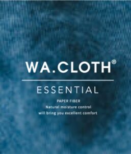 WA.CLOTH ESSENTIAL は天然のフィラメントファイバー・紙糸を主な原料として作られた、着る人と環境に優しいウェアブランド。紙糸には優れた吸放湿性と肌離れ性があり、べとつきや蒸れを軽減してくれます。糸の間の空隙により、夏は涼しく冬暖かく、かつ軽量です。加えて自然の抗菌防臭性や紫外線吸収力のある、シーズンや条件を問わず快適に過ごせる機能を持ち合わせています。一般的な家庭洗濯や使用に耐えうる強度と耐久性があります。