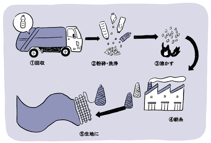 ペットボトルのリサイクル繊維を使った洋服だと。
