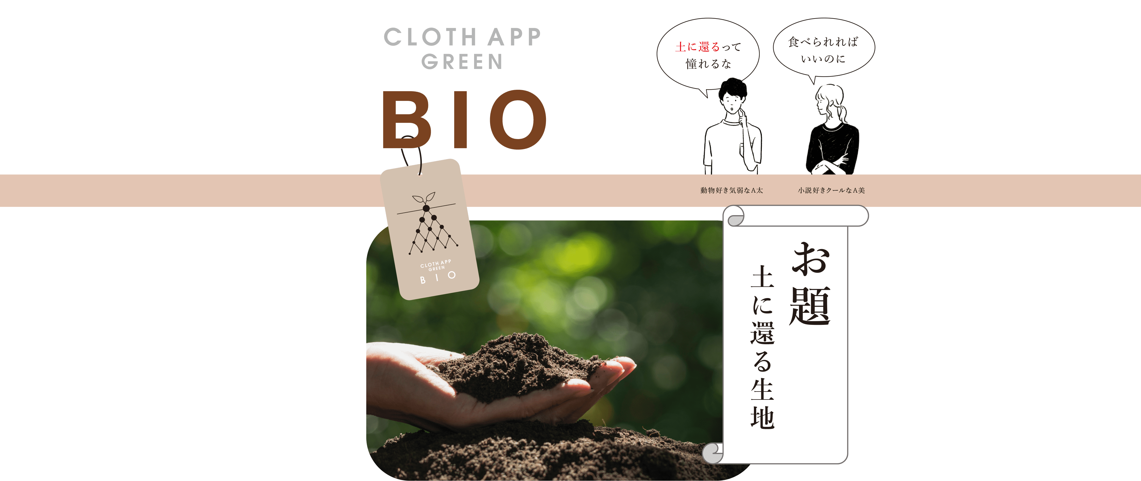 BIOは、トウモロコシやサトウキビなんかのデンプンからとれる乳酸を原料にした「ポリ乳酸繊維」をメインに使った生地なんだ。