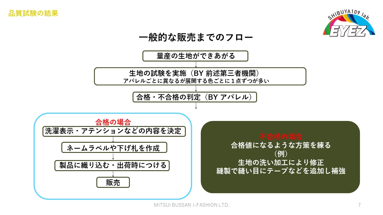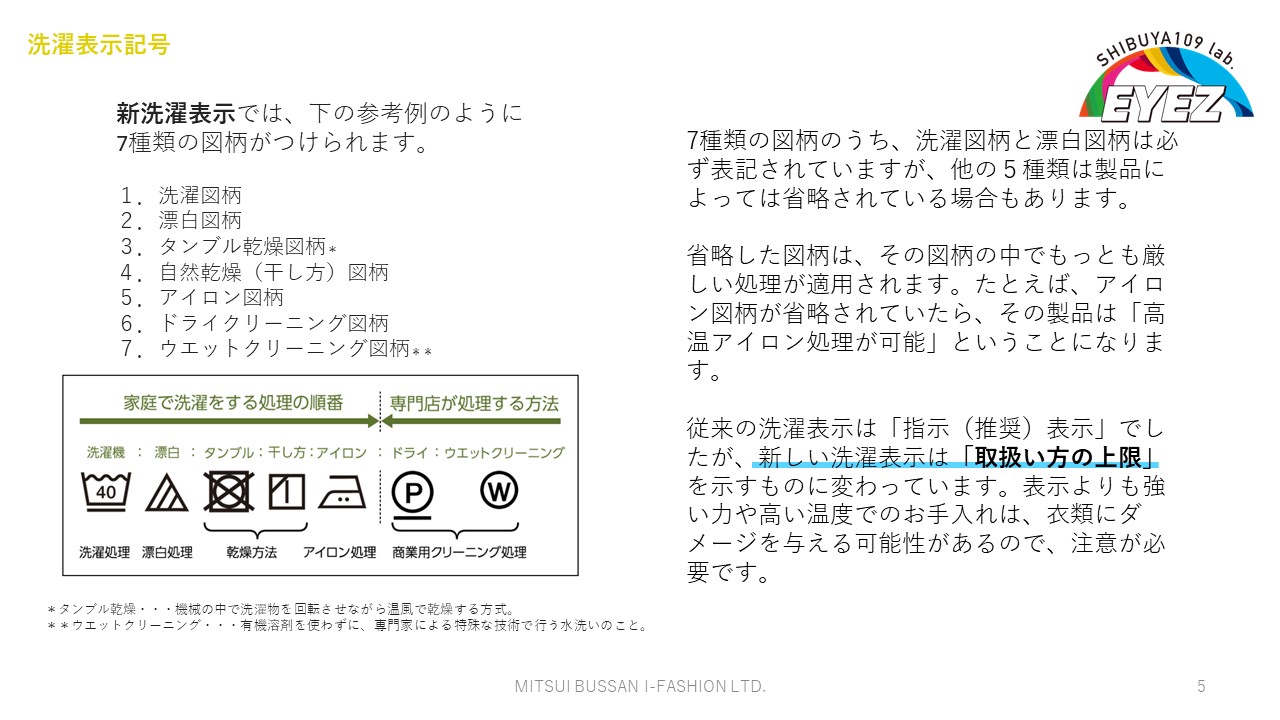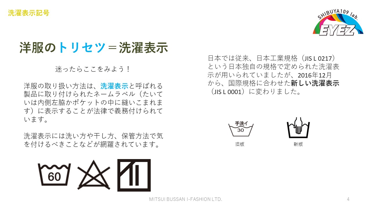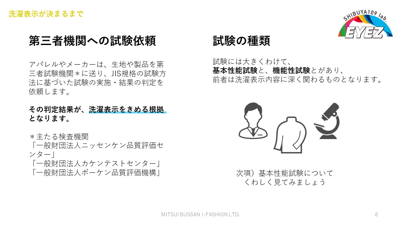 そこで、そもそも洗濯絵表示はどのように見ればよいのか、ものづくりの過程においてどのような試験を経て決められているのか、といった背景知識を交えてレクチャーを行いました。