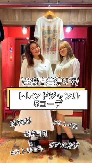 全く違うコーデを紹介することで、古着も様々なファッションジャンルに取り入れられることを伝えています。